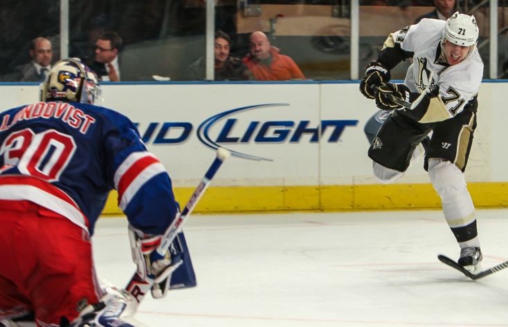 Evgeni Malkin hopes to put the puck past Henrik Lundqvist in a battle at the Garden on Wednesday (Via Last Word On Sports)